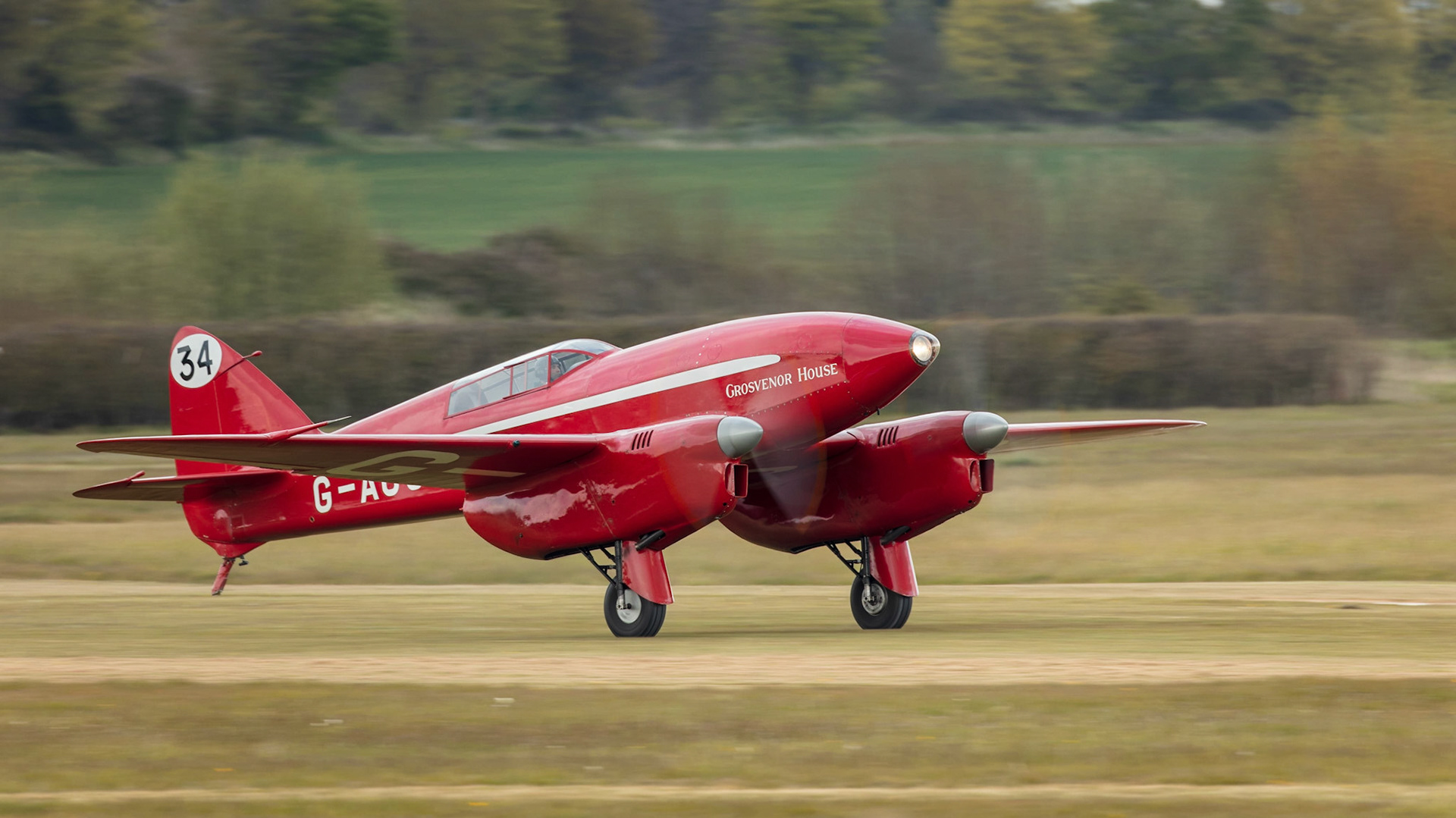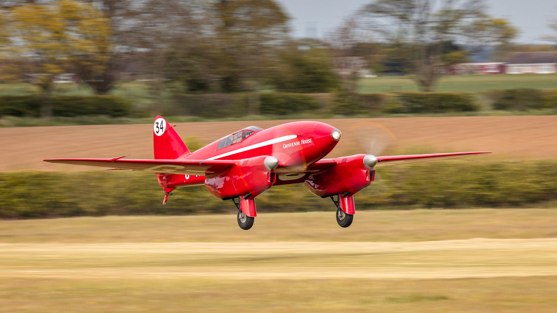 Old Warden, UK - 4th August 2019: A vintage racing de Havilland DH.88 Comet l in flight