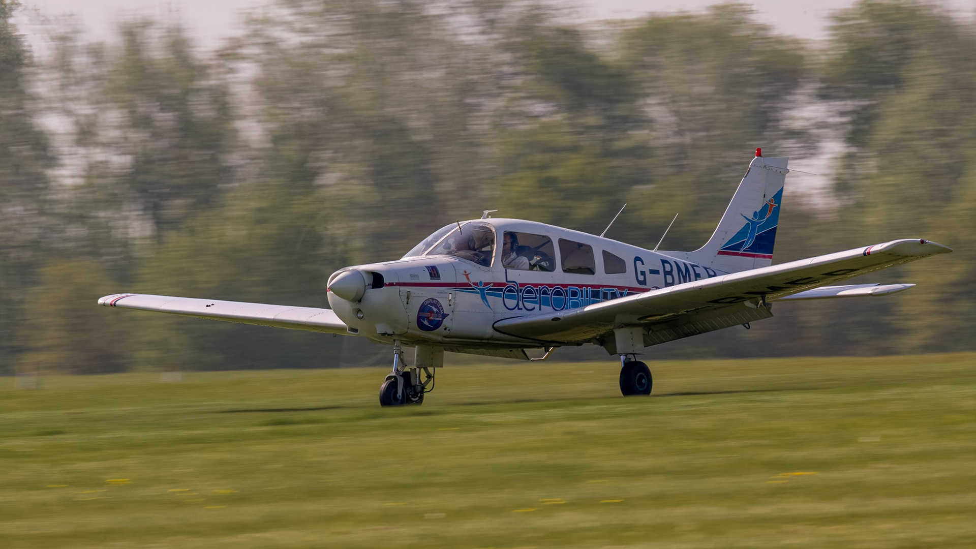 Biggleswade, UK - 6th May 2018: Piper PA-31 Navajo aircraft landing at airfield