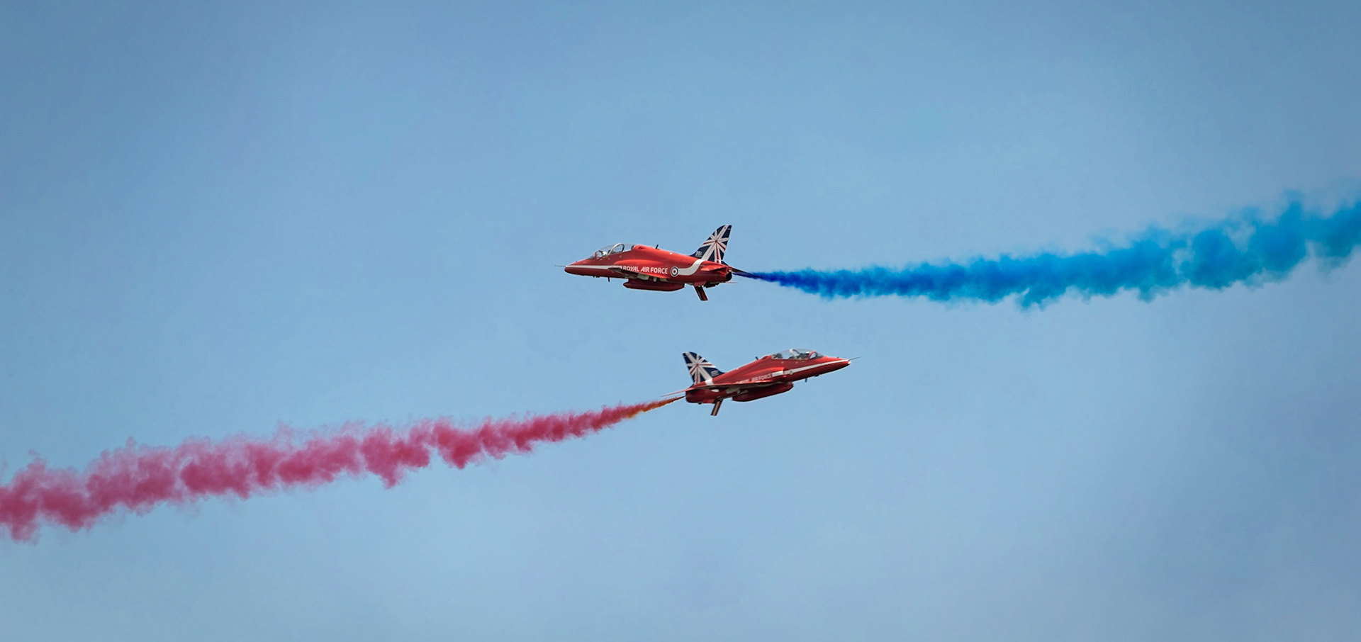Fairford, UK - 15th July 2017: An RAF Red Arrows Hawk jet aircraft landing at speed