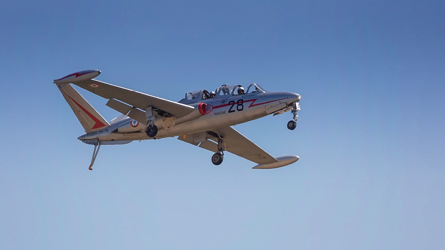 Fairford, UK - 15th July 2017: A historic Saab 105 trainer aircraft in flight