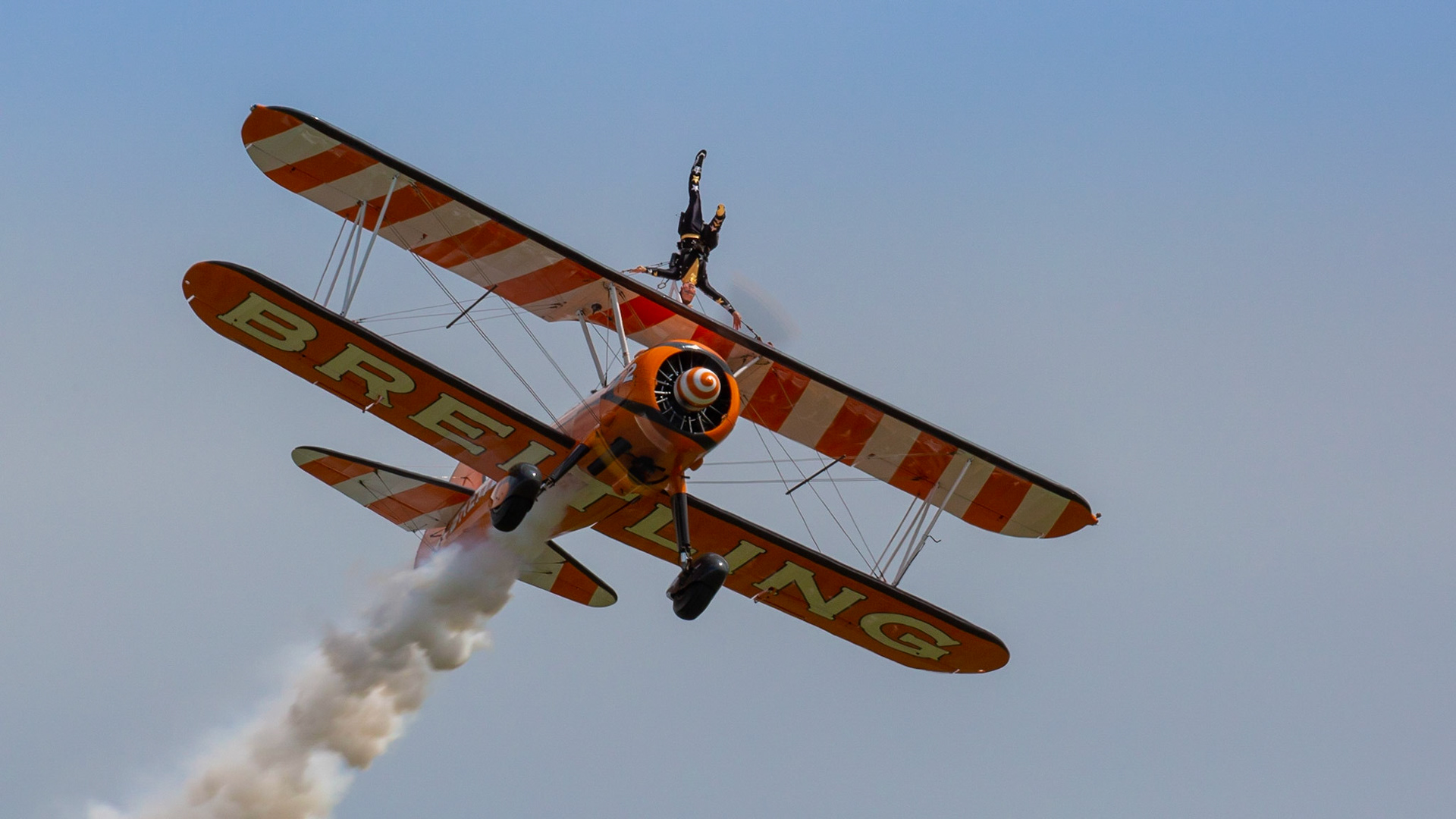 Cosford, UK - 08 June 2014: Breitling Wing Walkers display team seen at RAF Cosford Airshow.