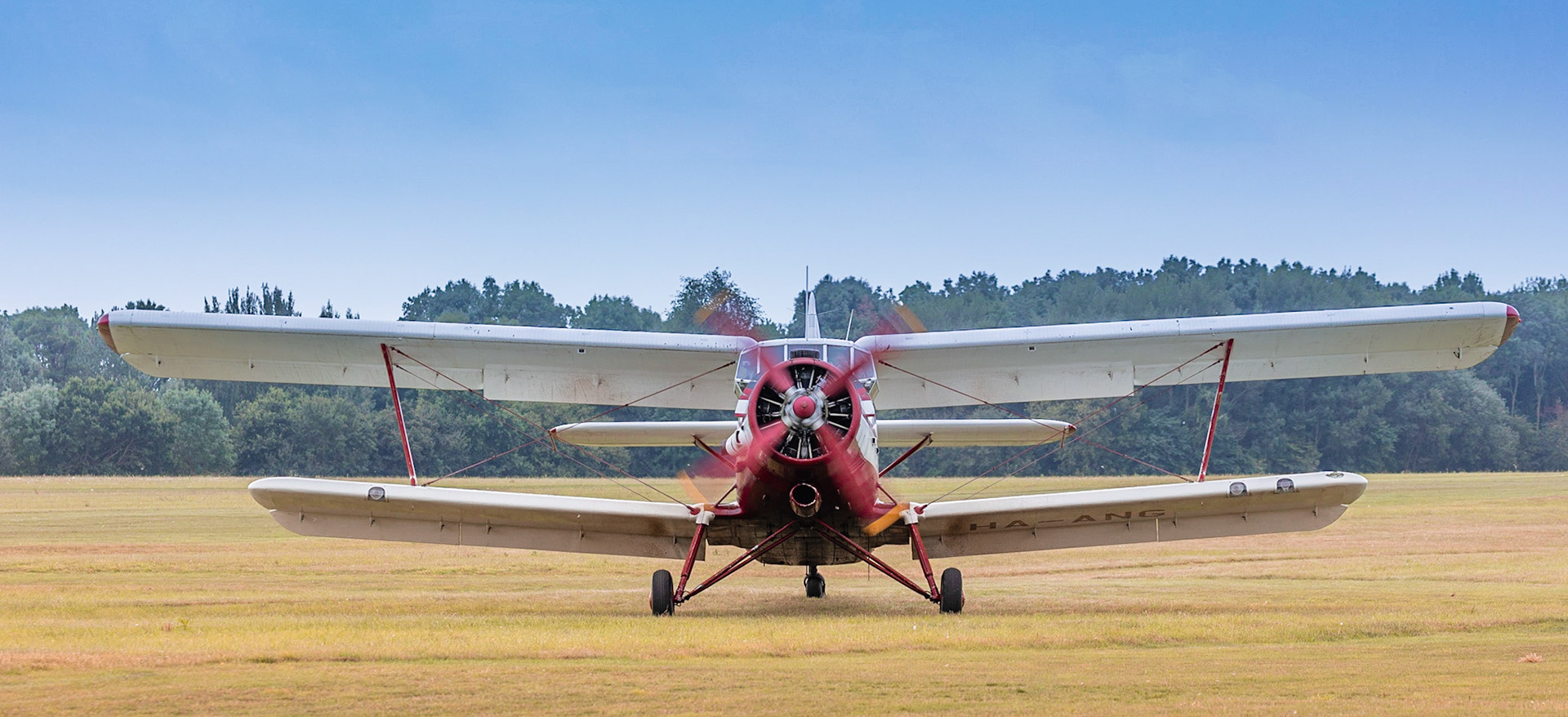 Old Warden, UK - 4th August 2019: A vintage Bucker Jungmann aircraft landing on a grass airfield