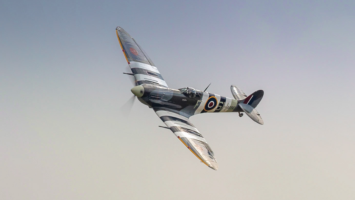 Old Warden, UK - 4th August 2019: A vintage world war two British Spitfire fighter plane in flight