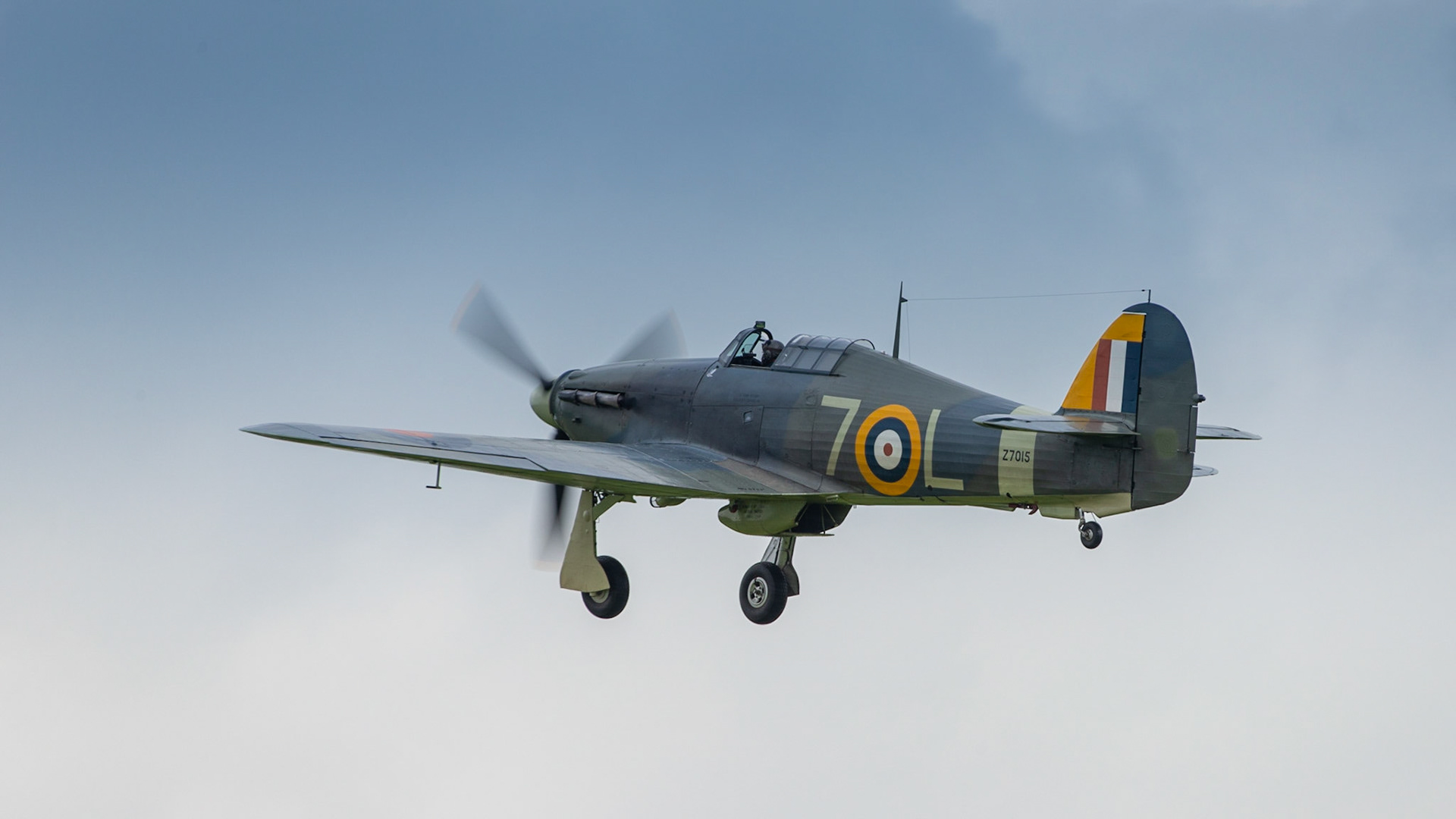 Old Warden, UK - 4th August 2019: A vintage WW2 Hawker Hurricane in flight