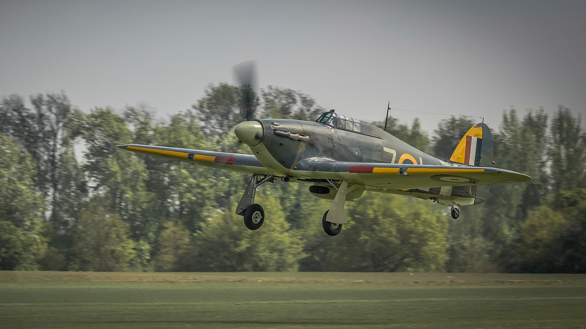 Old Warden, UK - 4th August 2019: A vintage WW2 Hawker Hurricane landing at airfield